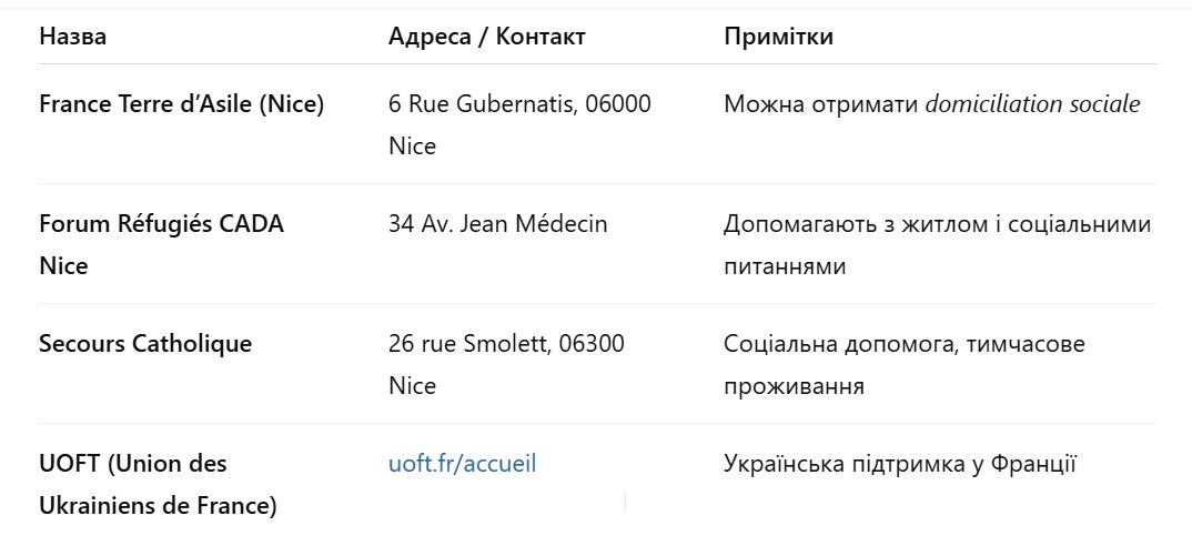 🔹 Корисні організації у Ніцці, які допомагають з адресою: